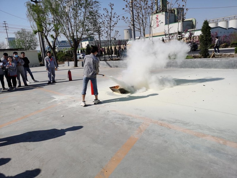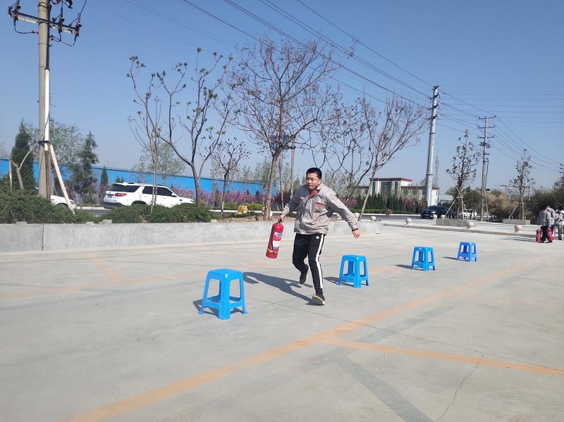 一声哨响,只见两名身着工装的员工手拉推车式灭火器,快速通过重重障碍,冒着前方“滚滚浓烟”,迅速跑向火场……